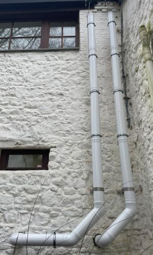 découpe cuve mazout par un de nos monteurs, conduite de gaz et tubage de cheminée